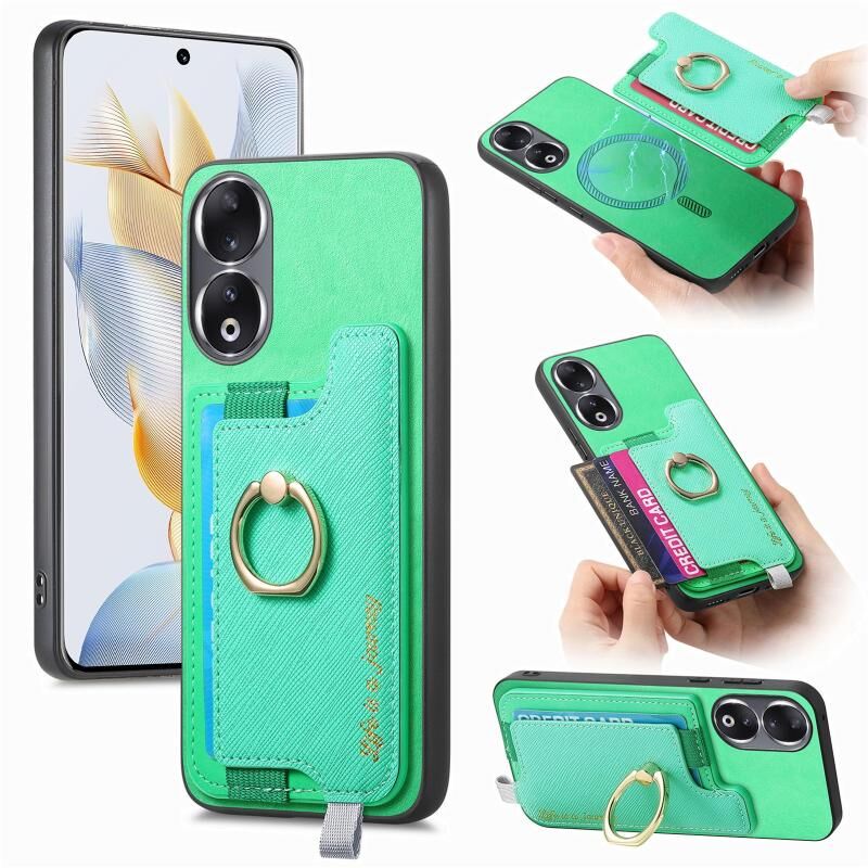 Θήκη τηλεφώνου Honor 90 Retro Magsafe Δερμάτινος Δακτύλιος Στήριξης Κάρτας (Κίτρινο)