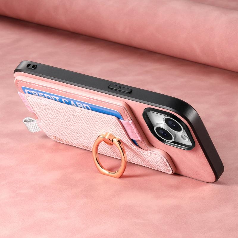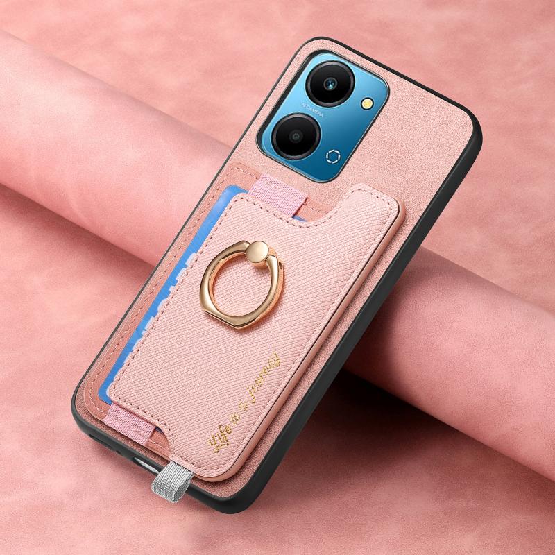 For Honor 90 Retro Magsafe Cross Leather Ring Holder Card Bag Phone Case(Pink)