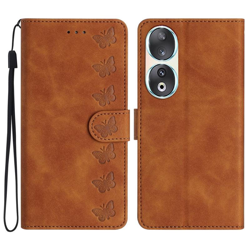Θήκη τηλεφώνου δερμάτινη ανάγλυφη "Seven Butterflies" για Honor 90 (Καφέ)