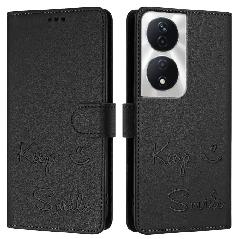 For Honor 90 Smart 5G Global Smile Embossing RFID Leather Phone Case(Black)