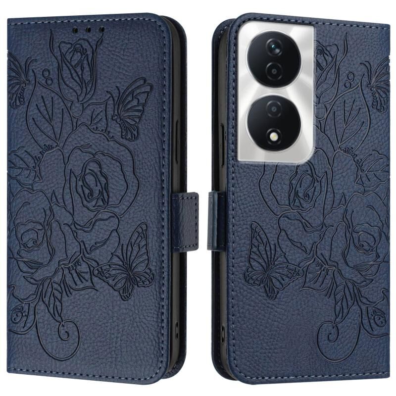 Θήκη τηλεφώνου από δέρμα με ανάγλυφο σχέδιο, RFID και προστασία από κλοπή για Honor 90 Smart 5G / X7b 5G / 4G (Σκούρο μπλε)