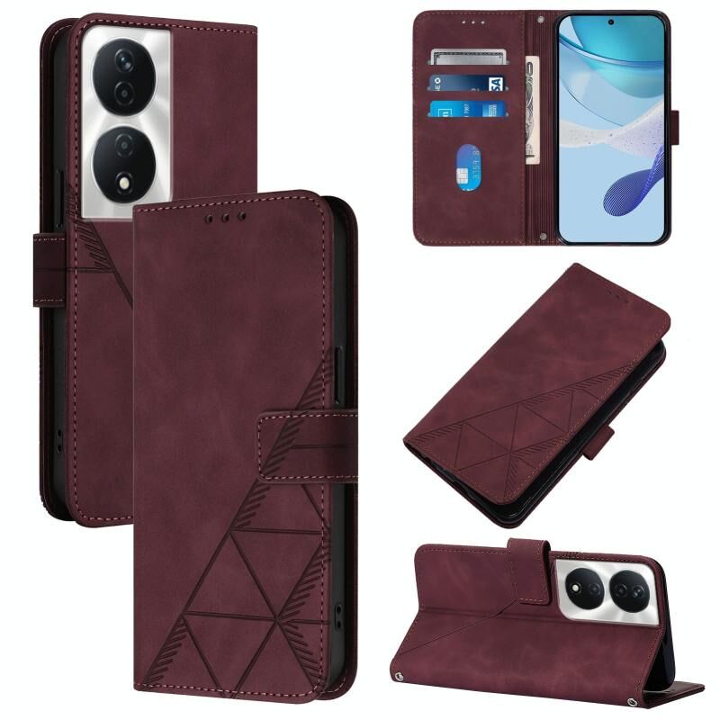 Για Honor 90 Smart Global / X7b 4G / 5G Global Crossbody 3D ανάγλυφο Flip δερμάτινη θήκη τηλεφώνου (κόκκινο κρασί)