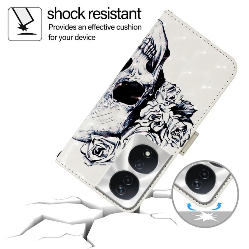 Θήκη τηλεφώνου από δέρμα με οριζόντιο άνοιγμα και τρισδιάστατη βαφή για Honor 90 Smart / X7b 4G / 5G Global (Κρανίο)