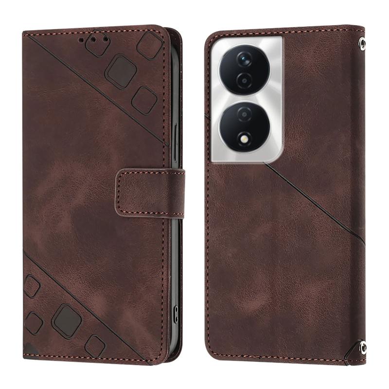 For Honor 90 Smart / X7b 4G / 5G Skin-feel Embossed Leather Phone Case(Brown)