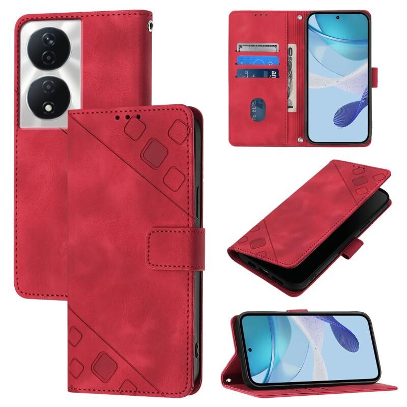 Θήκη τηλεφώνου από δέρμα με ανάγλυφη υφή για Honor 90 Smart / X7b 4G / 5G (Ανοιχτό Μωβ)
