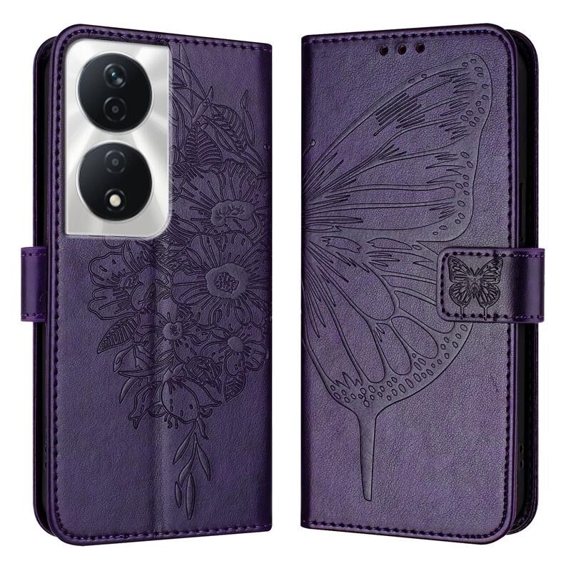 Για Honor 90 Smart / X7b 4G / X7b 5G ανάγλυφη πεταλούδα δερμάτινη θήκη τηλεφώνου (Dark Purple)