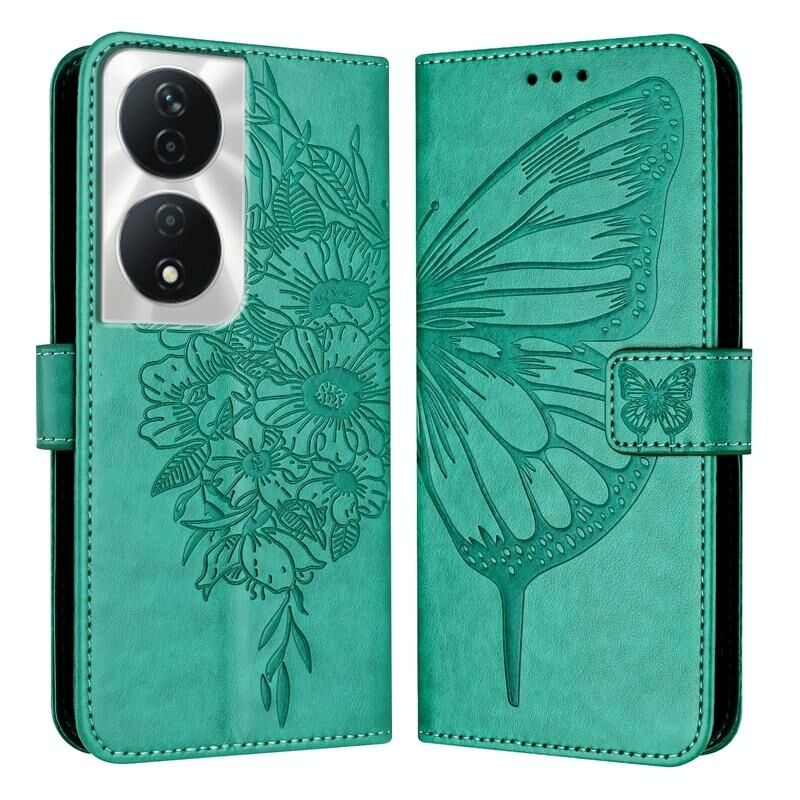 Για Honor 90 Smart / X7b 4G / X7b 5G ανάγλυφη πεταλούδα δερμάτινη θήκη τηλεφώνου (πράσινο)