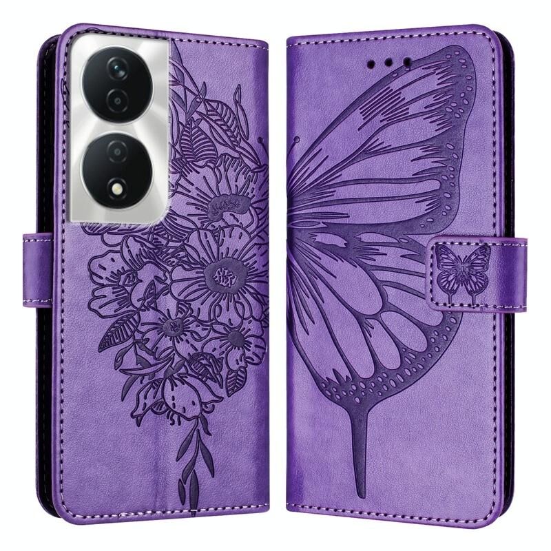 Για Honor 90 Smart / X7b 4G / X7b 5G ανάγλυφη πεταλούδα δερμάτινη θήκη τηλεφώνου (μωβ)