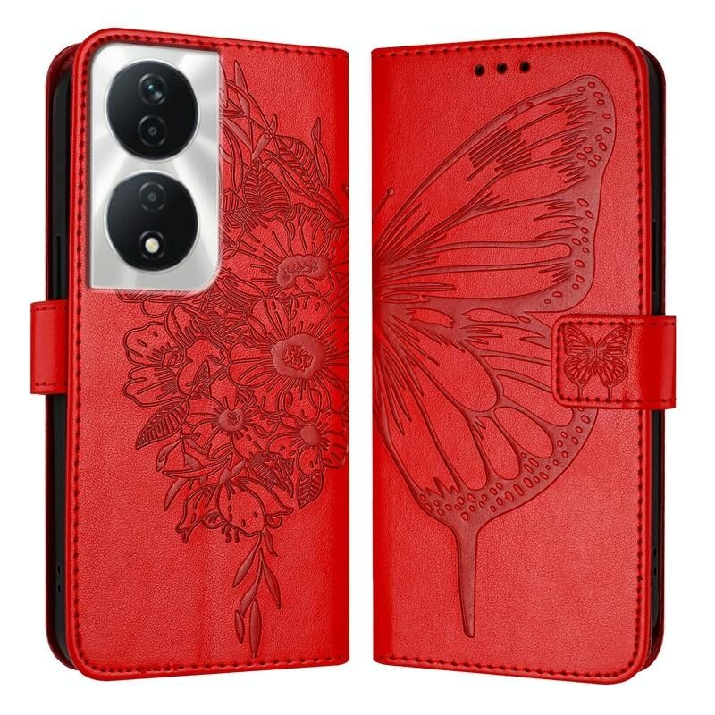 Για Honor 90 Smart / X7b 4G / X7b 5G ανάγλυφη πεταλούδα δερμάτινη θήκη τηλεφώνου (κόκκινο)