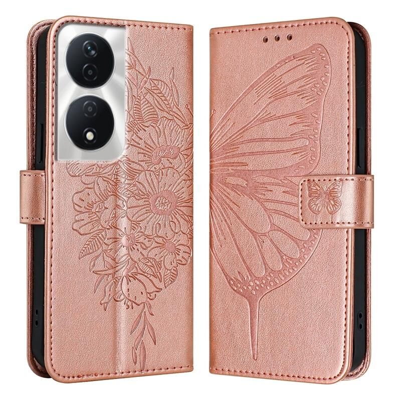 Για Honor 90 Smart / X7b 4G / X7b 5G ανάγλυφη πεταλούδα δερμάτινη θήκη τηλεφώνου (Rose Gold)