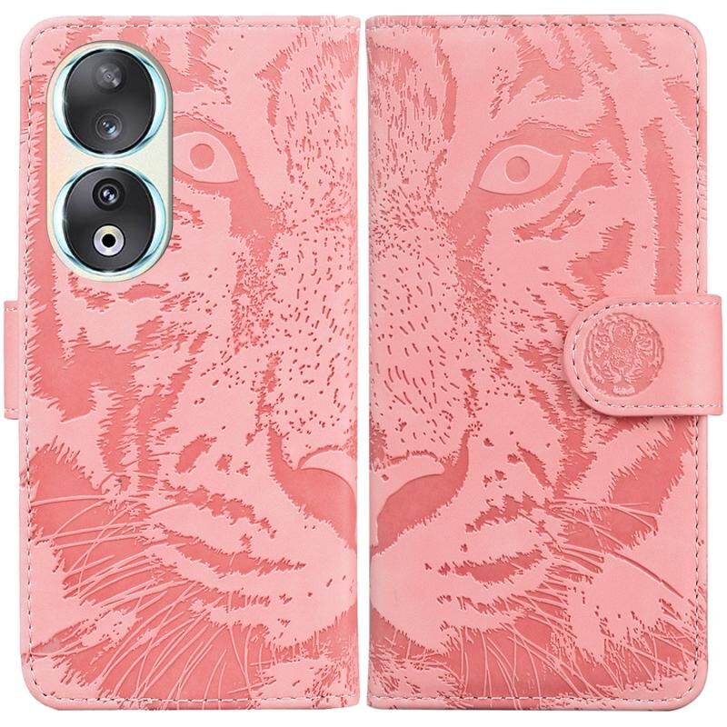Θήκη τηλεφώνου από δέρμα με σχέδιο Tiger Embossing για Honor 90 (Μαύρο)