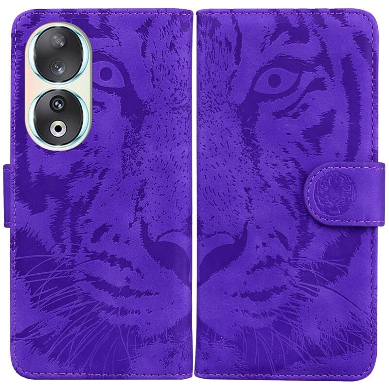 Θήκη τηλεφώνου από δέρμα με σχέδιο Tiger Embossing για Honor 90 (Μαύρο)