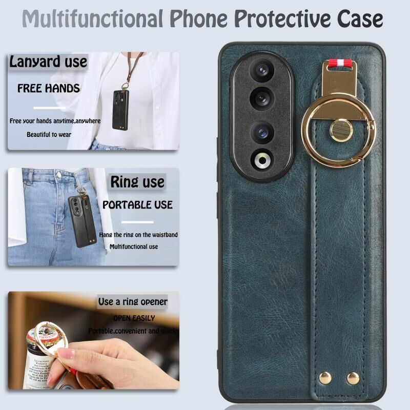 Για Honor 90 Wristband δέρμα πίσω υπόθεση τηλεφώνου (μπλε)