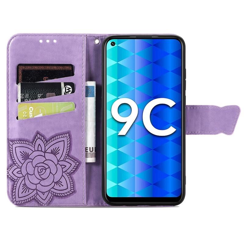 Θήκη τηλεφώνου από δέρμα με ανάγλυφο σχέδιο πεταλούδας και λουλουδιών για Honor 9C (Λεβάντα)
