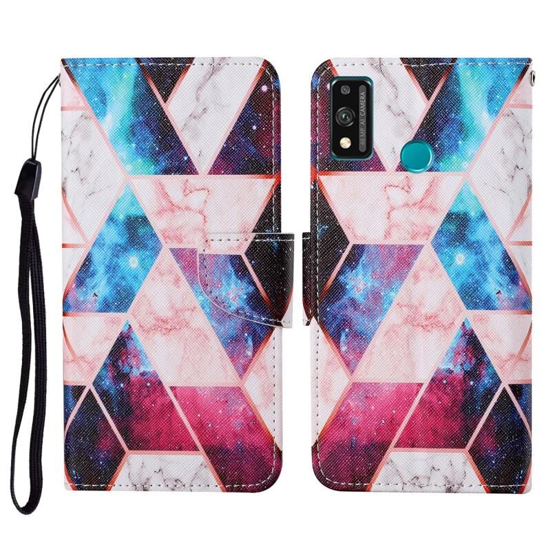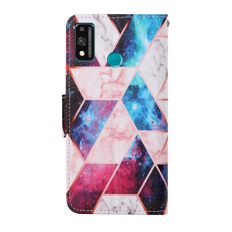 Θήκη δέρματος οριζόντιας αναδίπλωσης με σχέδιο πολύχρωμης ζωγραφικής για Honor 9X Lite με βάση στήριξης & υποδοχές καρτών & πορτοφόλι & κορδόνι (Μαρμάρινο Αστρικό).