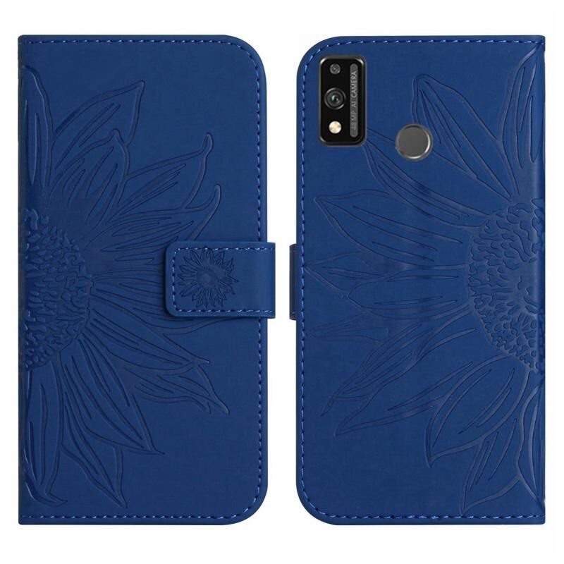 Θήκη τηλεφώνου από δέρμα με σχέδιο ηλίανθου και λουρί για Honor 9X Lite (Σκούρο Μπλε)