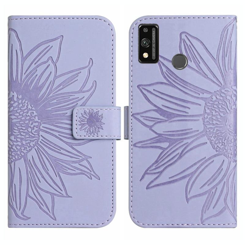 Θήκη τηλεφώνου από δέρμα με σχέδιο ηλίανθου και λουρί για Honor 9X Lite (Κόκκινο Ρόδι)