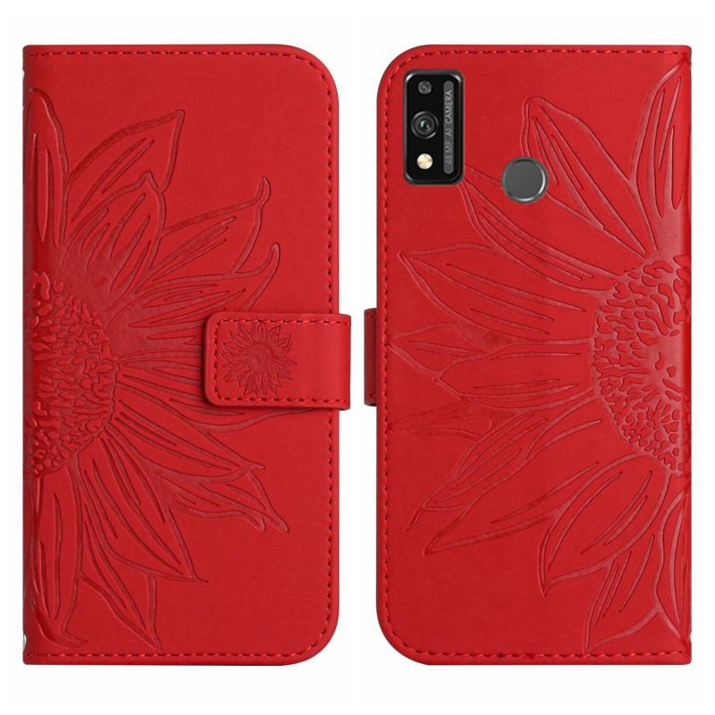 Θήκη τηλεφώνου από δέρμα με σχέδιο ηλίανθου τύπου flip για Honor 9X Lite με κορδόνι (Κόκκινο)