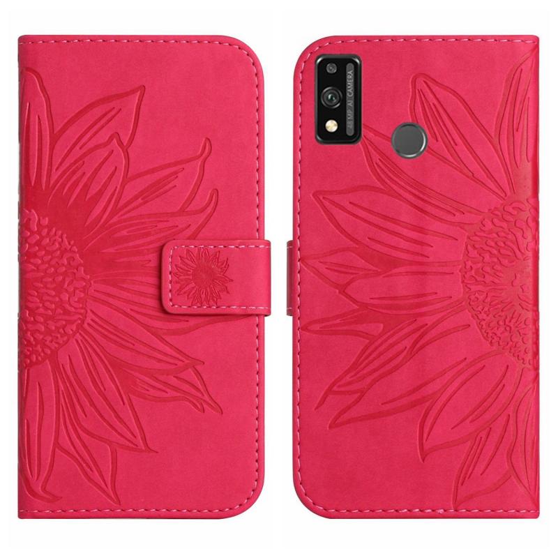 Θήκη τηλεφώνου από δέρμα με σχέδιο ηλίανθου και λουρί για Honor 9X Lite (Κόκκινο Ρόδι)