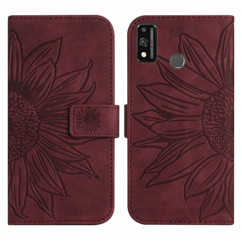Θήκη τηλεφώνου από δέρμα με σχέδιο ηλίανθου και λουρί για Honor 9X Lite (Κόκκινο Ρόδι)