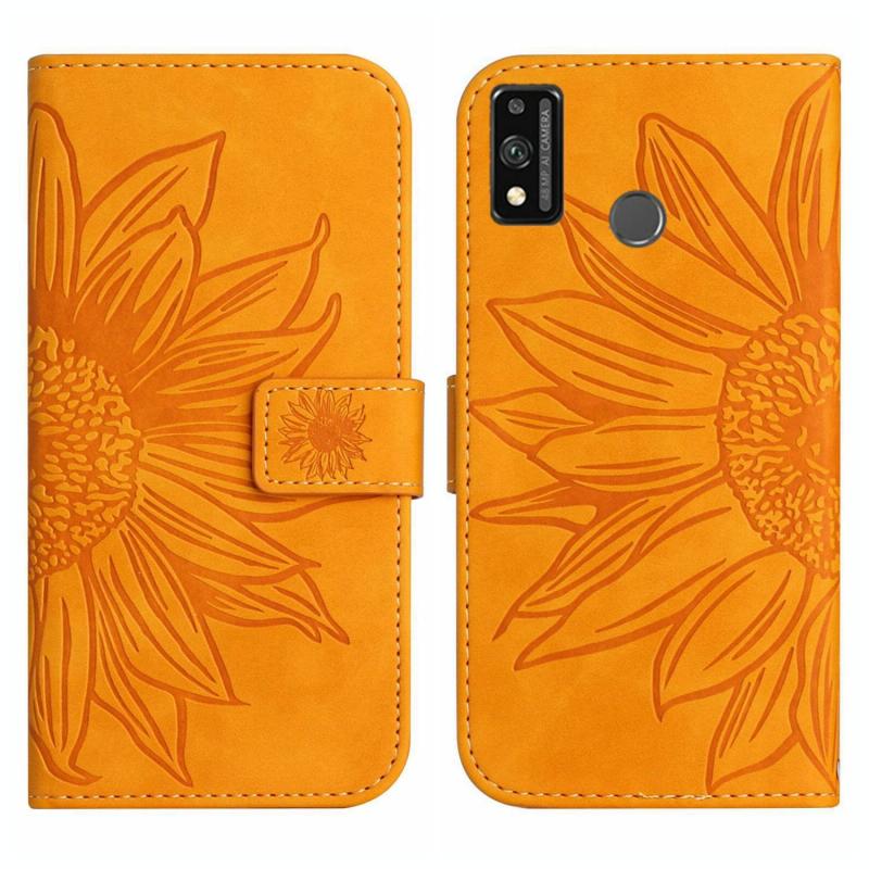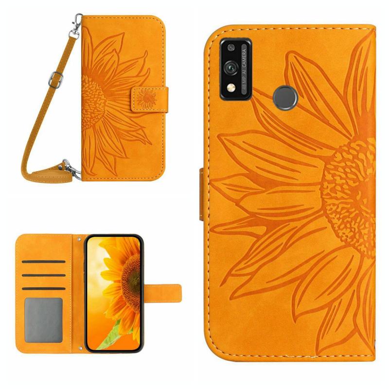 Θήκη τηλεφώνου από δέρμα με σχέδιο ηλίανθου και λουρί για Honor 9X Lite (Κόκκινο Ρόδι)