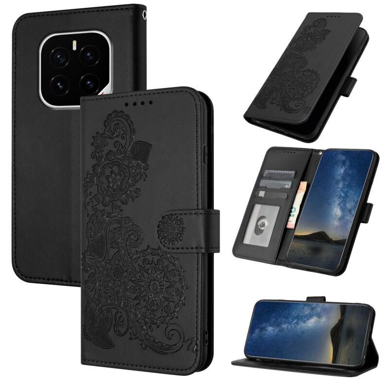 Θήκη τηλεφώνου από δέρμα με ανάγλυφο λουλούδι Datura για Honor GT Pro (Μαύρο)