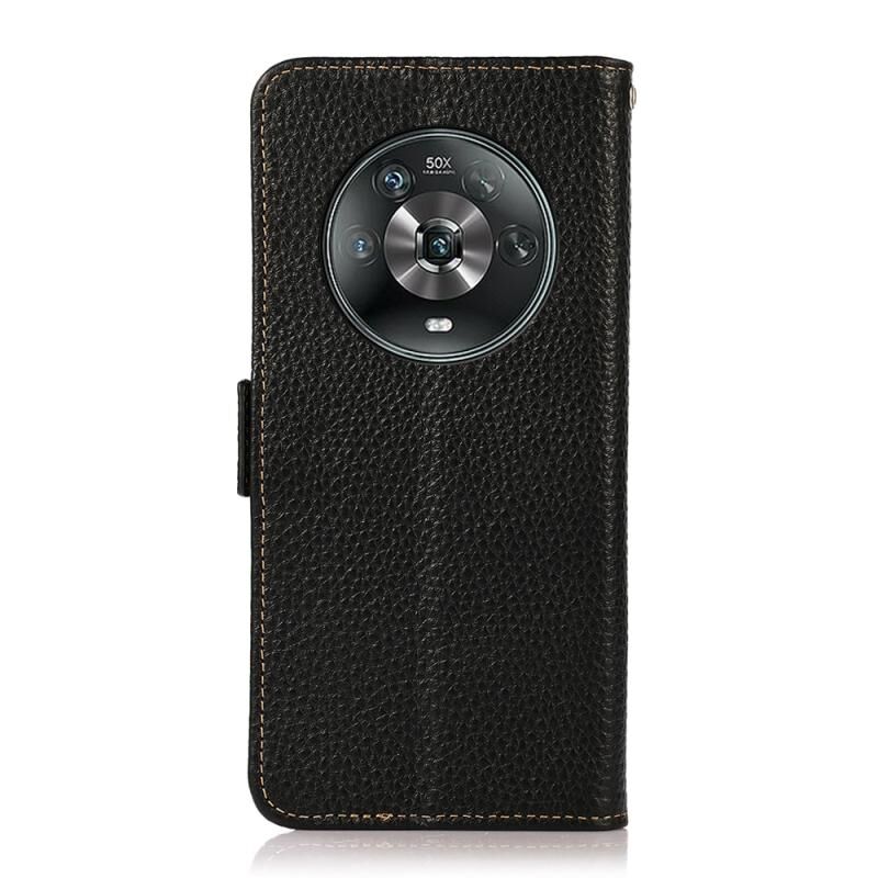 Θήκη τηλεφώνου For Honor Magic 4 KHAZNEH με μαγνητική πλευρά, γνήσιο δέρμα Litchi, RFID (Μαύρο)