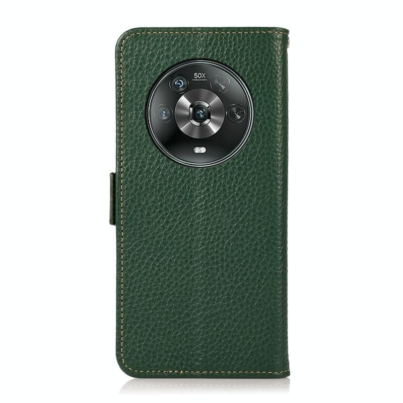 Θήκη τηλεφώνου For Honor Magic 4 KHAZNEH με μαγνητική πλευρά, γνήσιο δέρμα Litchi, RFID (Πράσινο)