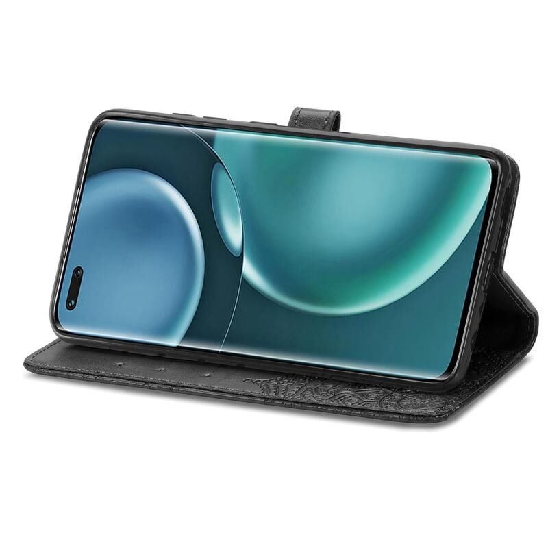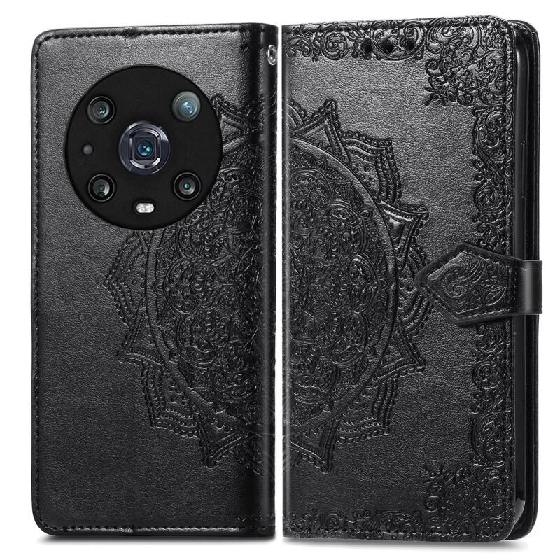 Για Honor Magic 4 Pro Mandala λουλούδι ανάγλυφο δερμάτινη θήκη τηλεφώνου (μαύρο)
