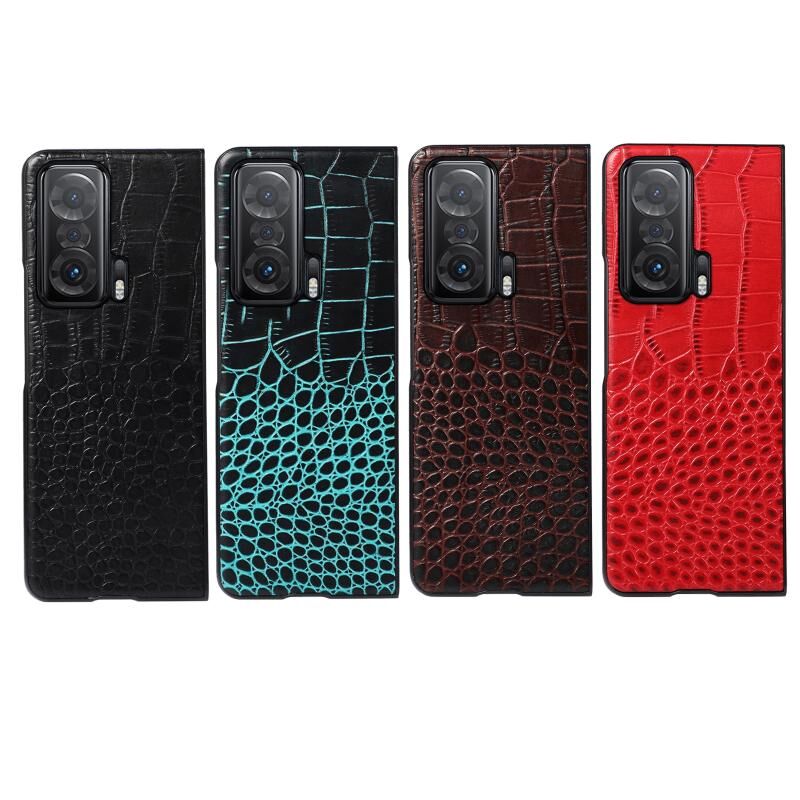 Θήκη τηλεφώνου Honor Magic V Crocodile Top Layer Cowhide Leather (Μαύρο)