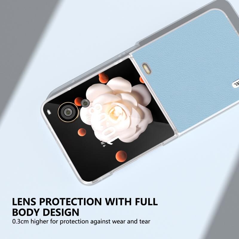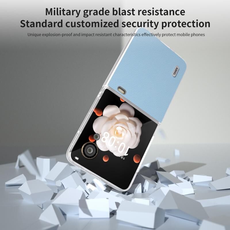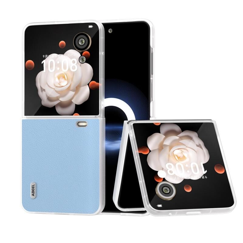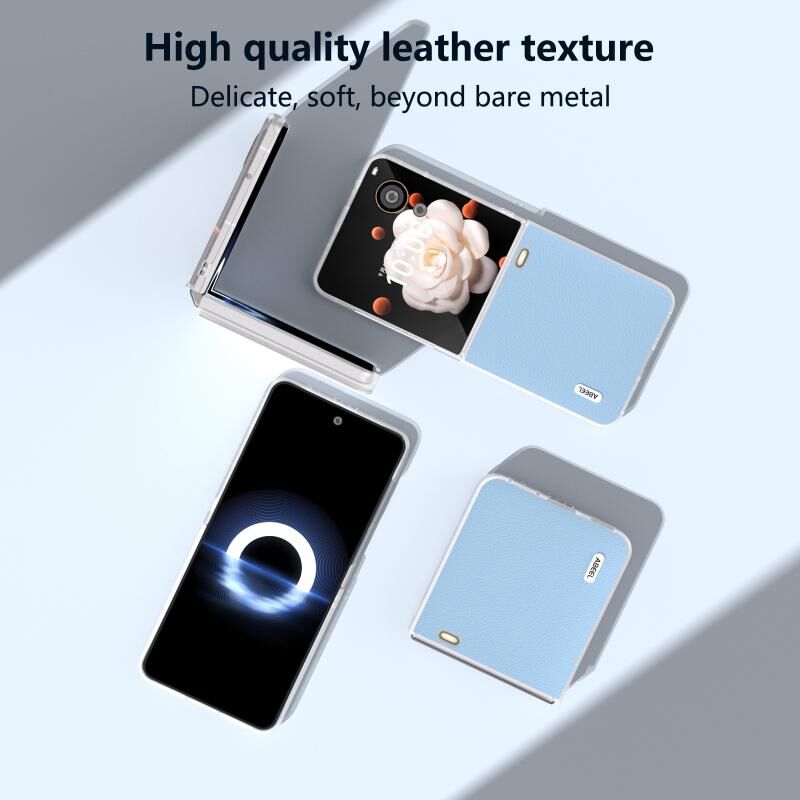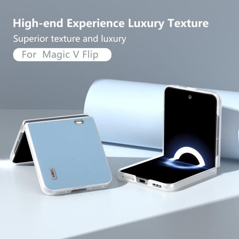 Θήκη κινητού τηλεφώνου Honor Magic V Flip ABEEL με ημιδιαφανές, παγωμένο πλαίσιο και γνήσιο δέρμα σε κυματιστό σχέδιο (Μαύρο)