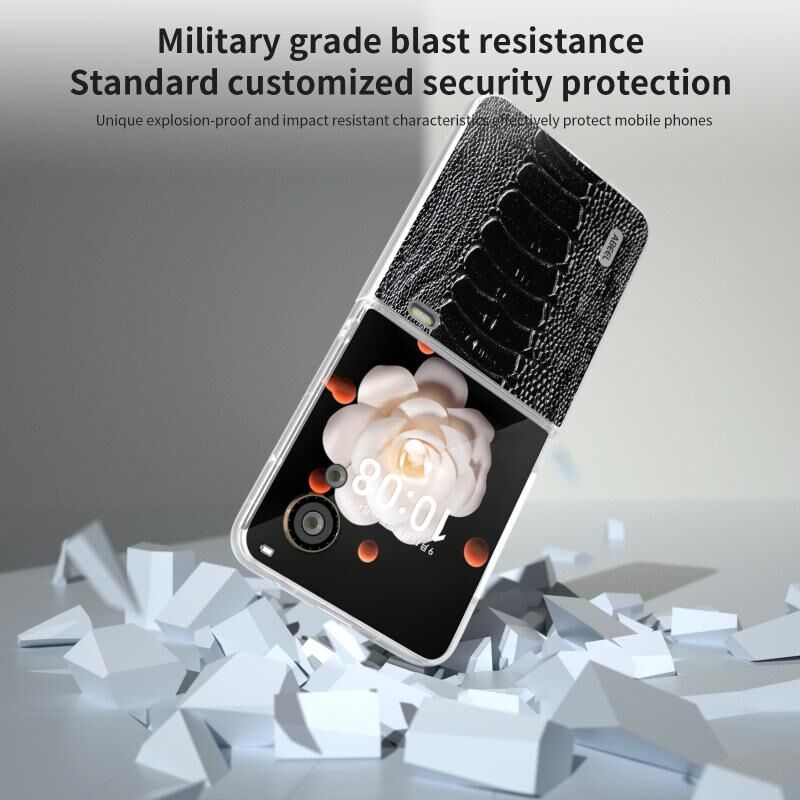 Θήκη τηλεφώνου Weilai Series από γνήσιο δέρμα για Honor Magic V Flip ABEEL, με ημιδιαφανές, παγωμένο πλαίσιο (Κόκκινο)