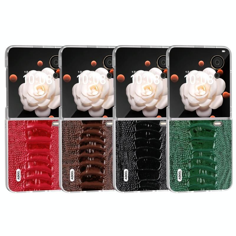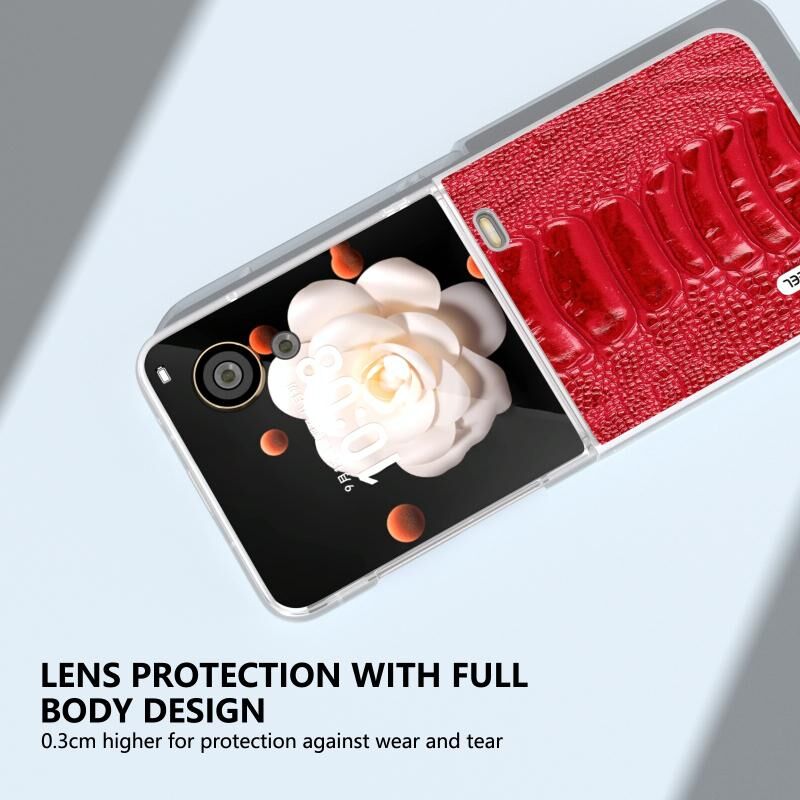 Θήκη τηλεφώνου Weilai Series από γνήσιο δέρμα για Honor Magic V Flip ABEEL, με ημιδιαφανές, παγωμένο πλαίσιο (Κόκκινο)