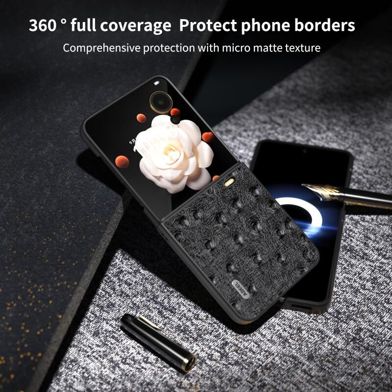 Θήκη τηλεφώνου από γνήσιο δέρμα με υφή στρουθοκάμηλου για Honor Magic V Flip ABEEL (Μαύρο)