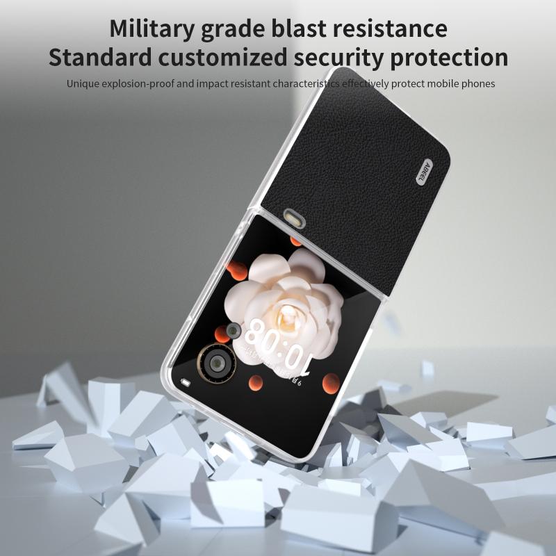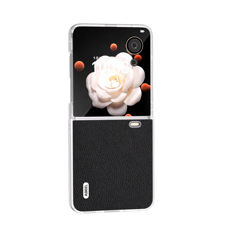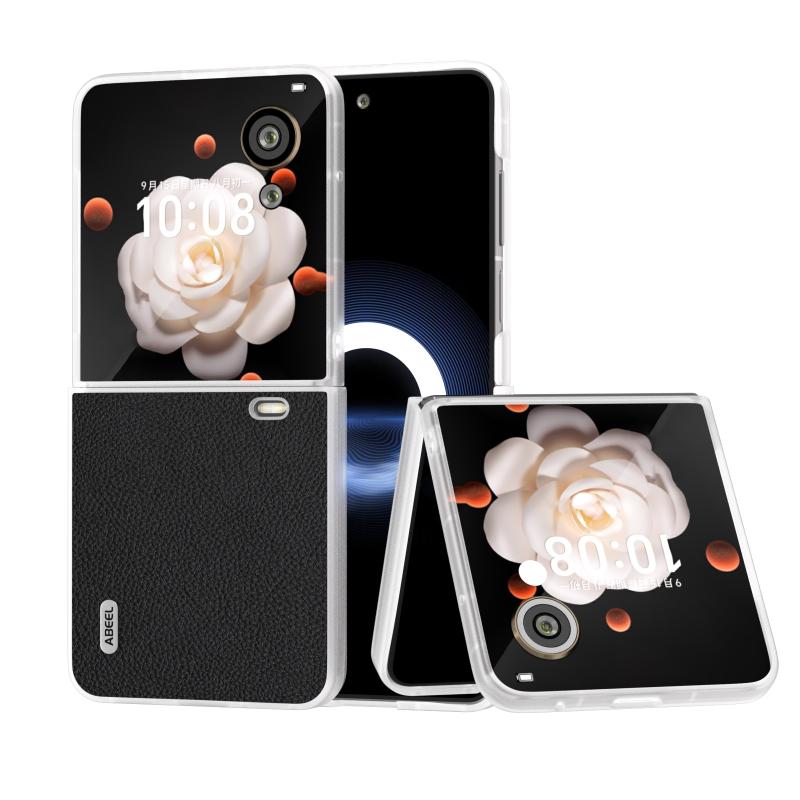 For Honor Magic V Flip ABEEL Genuine Leather + PC Litchi Texture Phone Case(Black)
