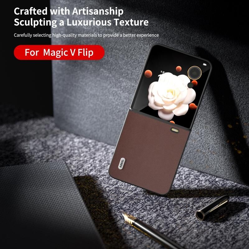 Θήκη τηλεφώνου από γνήσιο δέρμα Xiaoya Series για Honor Magic V Flip ABEEL (Καφέ)