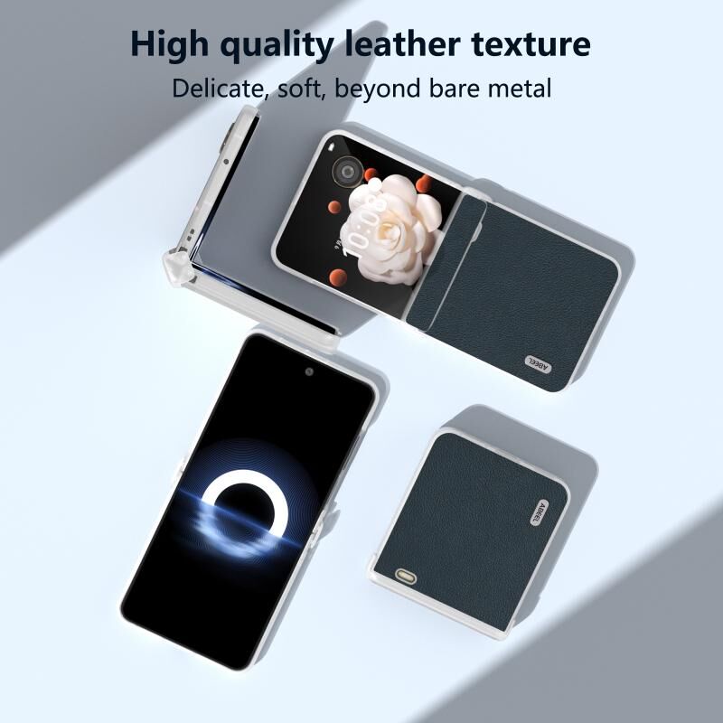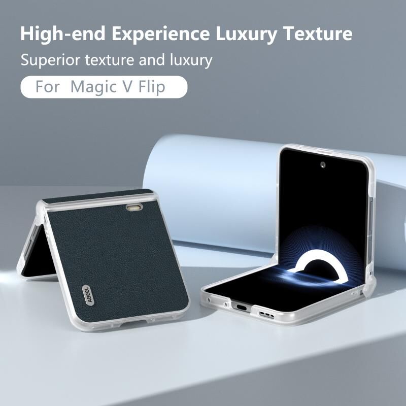 Θήκη κινητού Honor Magic V Flip ABEEL Τριών Μερών, Παγωμένο Διαφανές Πλαίσιο, Γνήσιο Δέρμα Κυματιστό (Μαύρο)