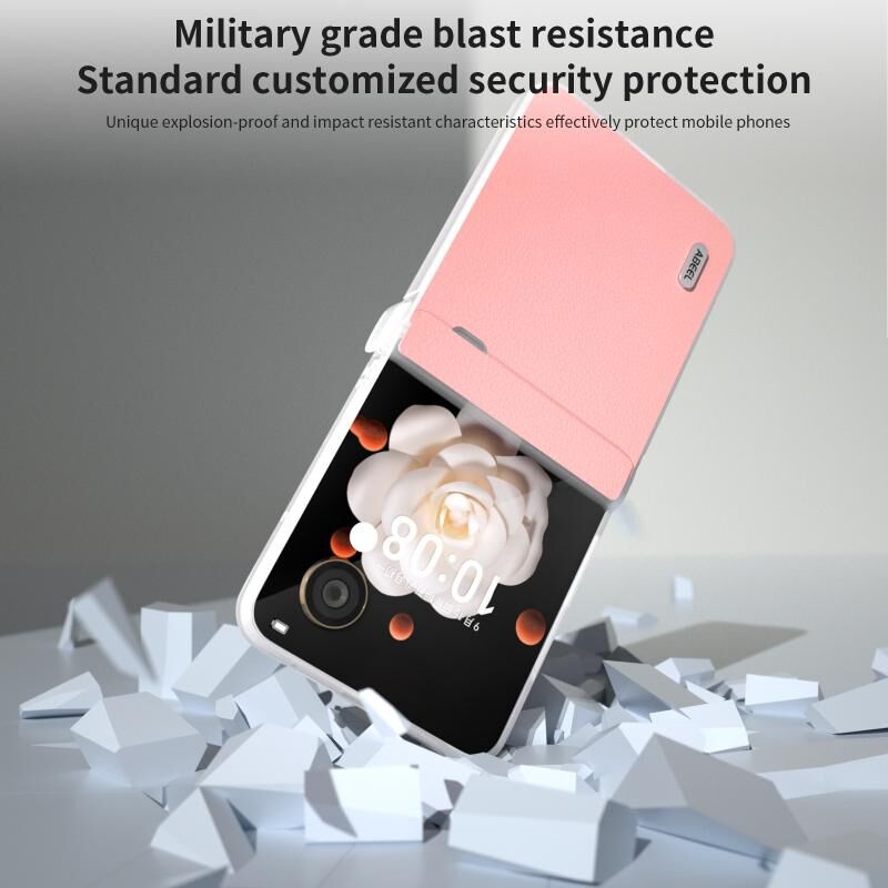 Θήκη κινητού Honor Magic V Flip ABEEL Τριών Μερών, Παγωμένο Διαφανές Πλαίσιο, Γνήσιο Δέρμα Κυματιστό (Μαύρο)