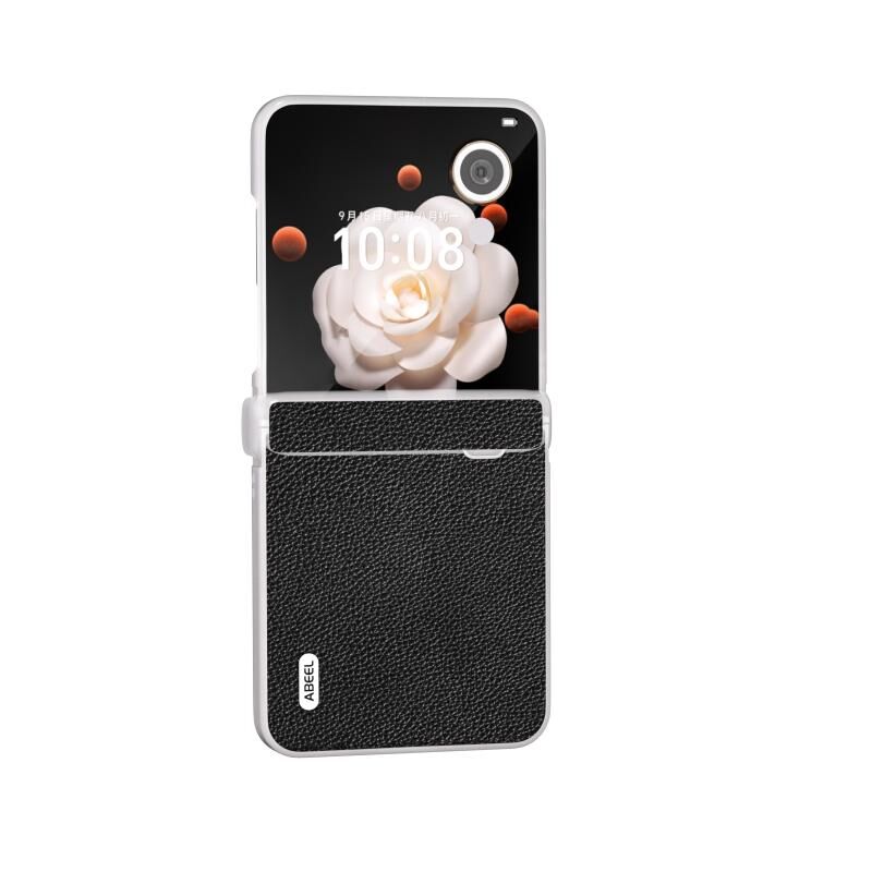 Θήκη τηλεφώνου από γνήσιο δέρμα Mino για Honor Magic V Flip ABEEL, τριών τμημάτων, παγωμένο διαφανές πλαίσιο (Πράσινο)