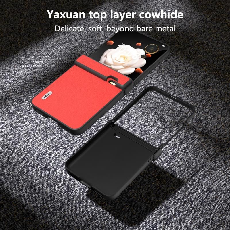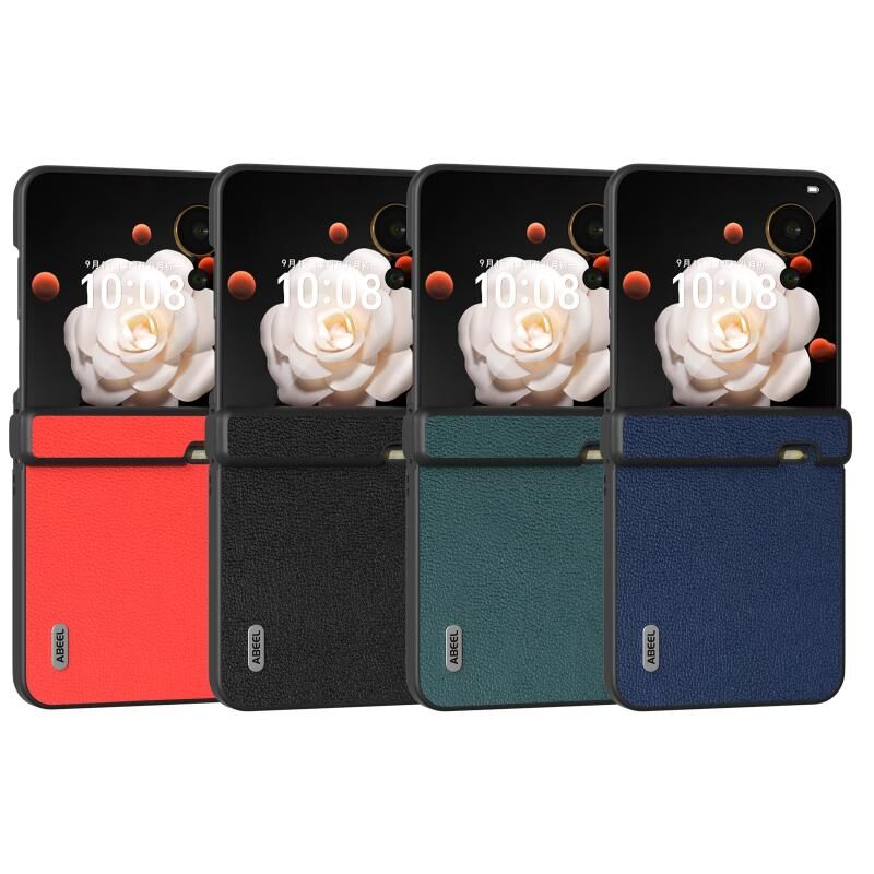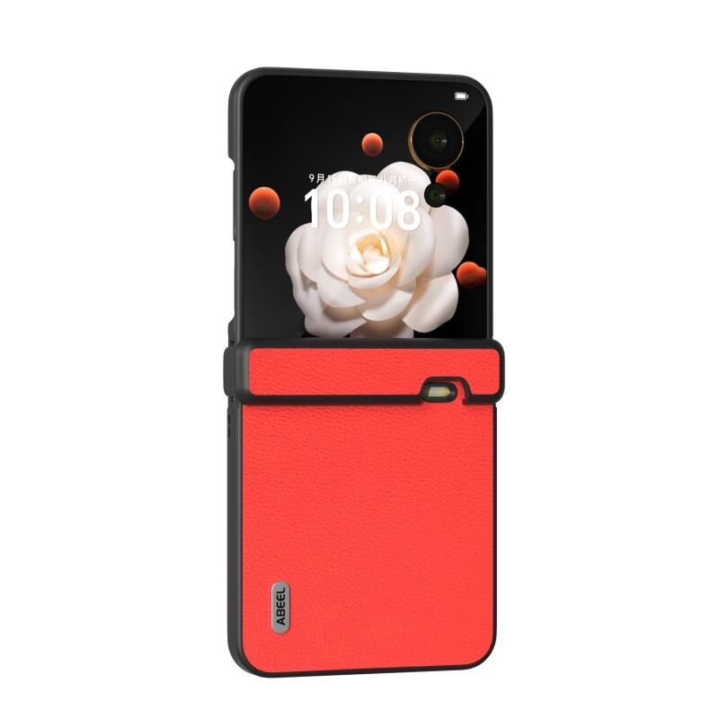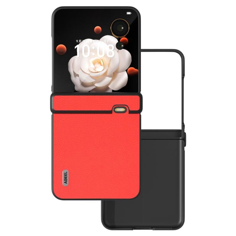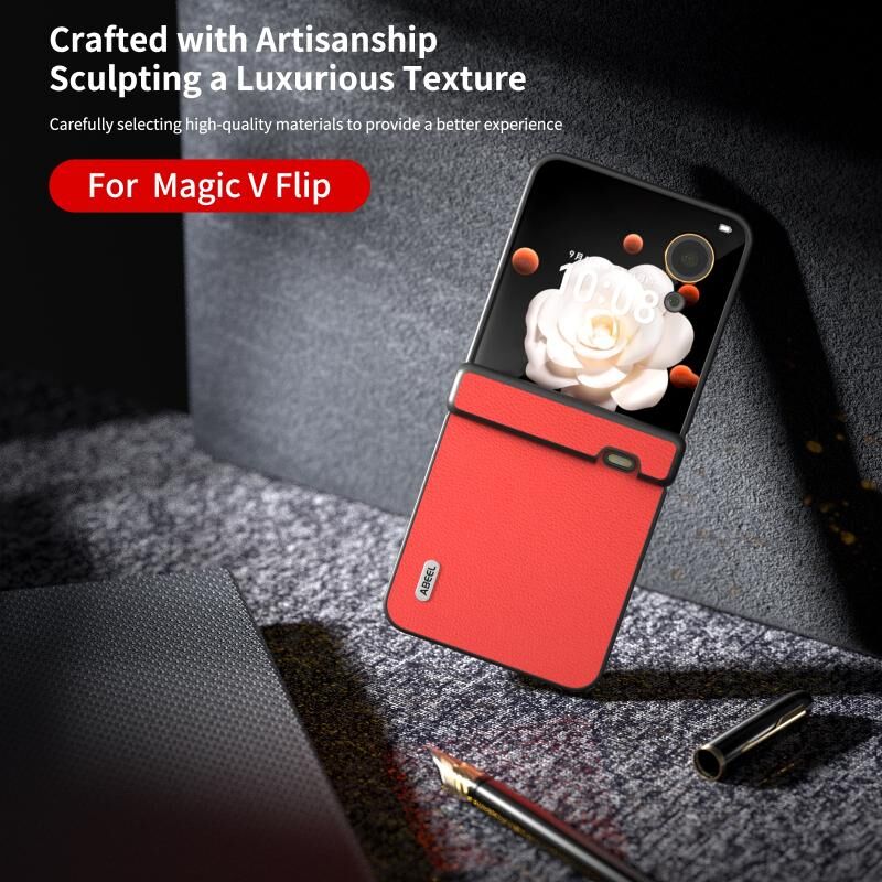 Θήκη τηλεφώνου Honor Magic V Flip ABEEL Τριών Μερών Γνήσιο Δέρμα Σειρά Luolai (Κόκκινο)