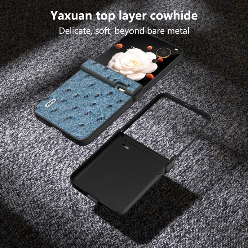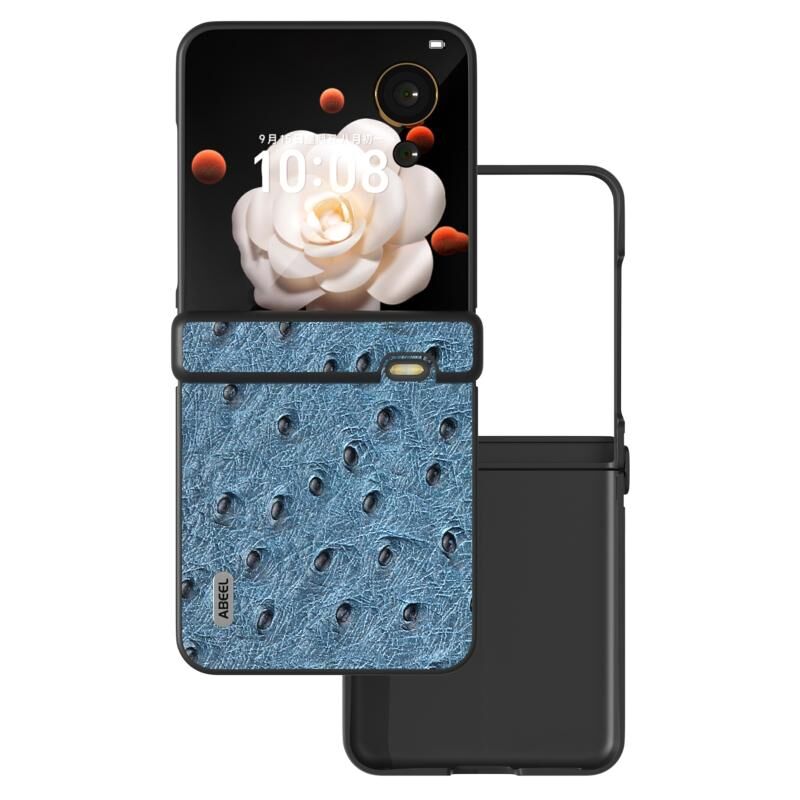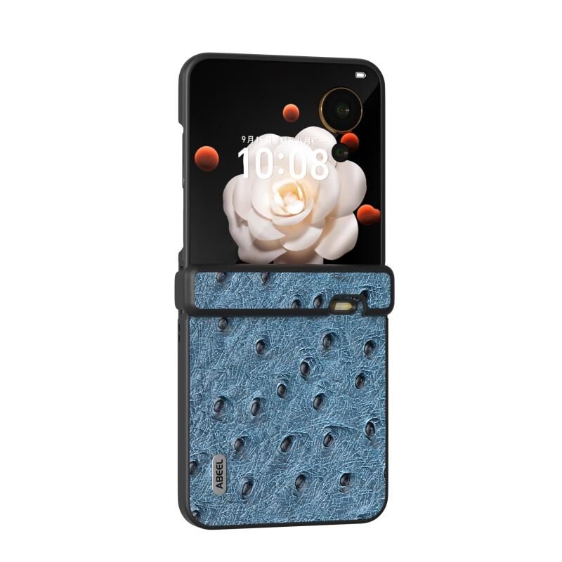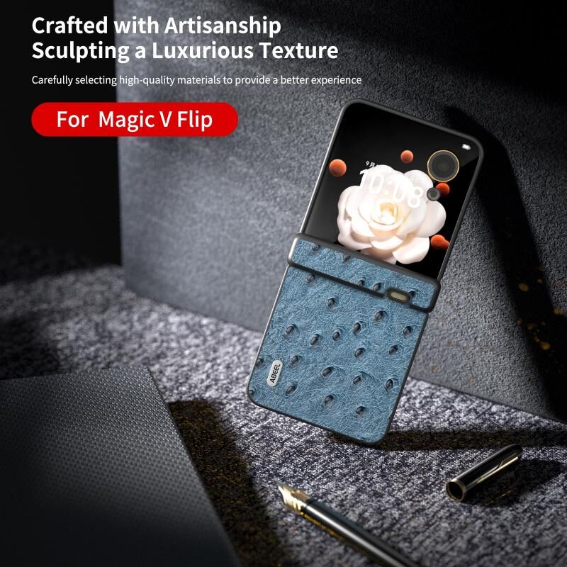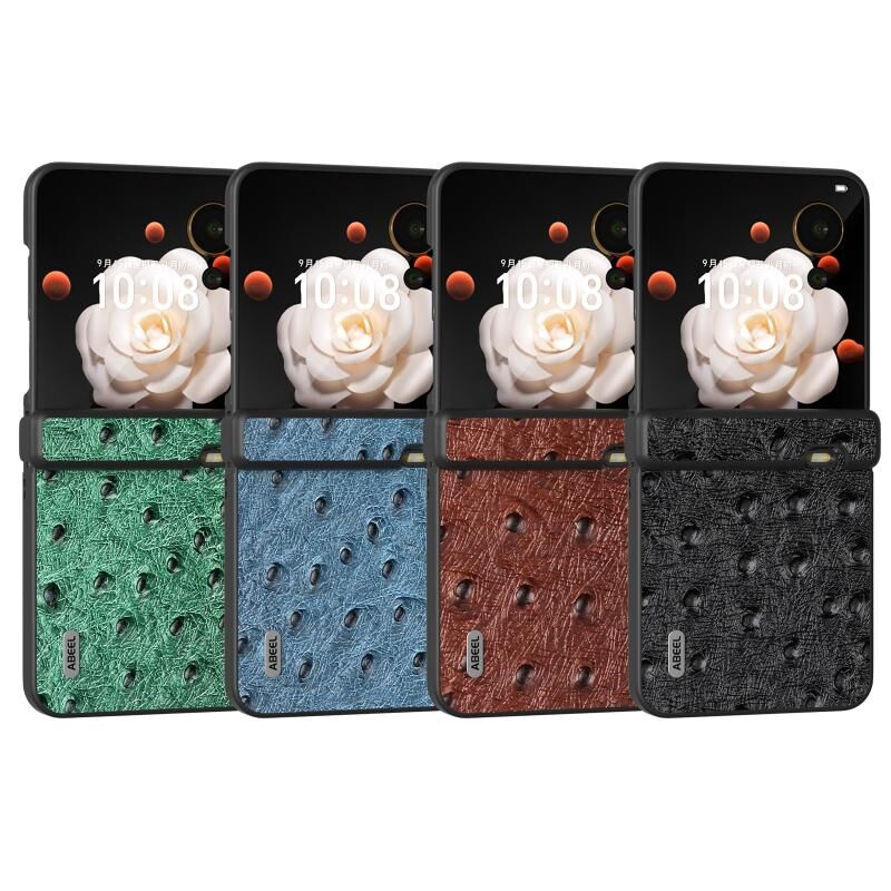 Θήκη τηλεφώνου Honor Magic V Flip ABEEL από γνήσιο δέρμα σε τρία μέρη με υφή στρουθοκάμπου (Μαύρο)