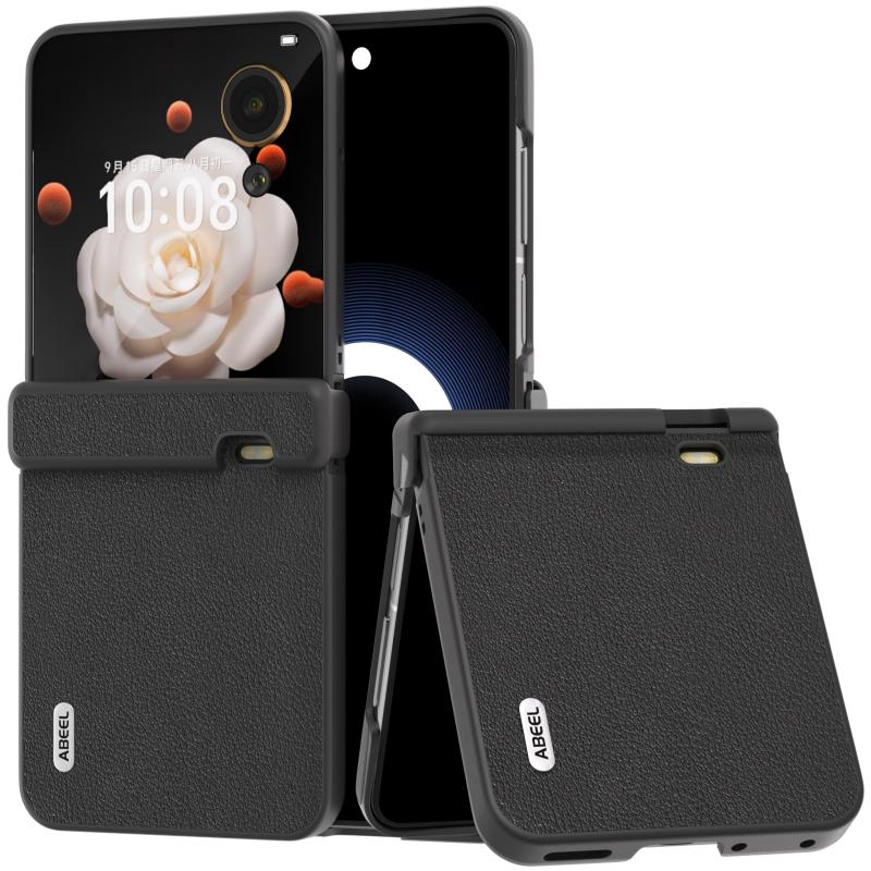 For Honor Magic V Flip ABEEL Three Parts Genuine Leather Wave Black Edge Phone Case(Black)