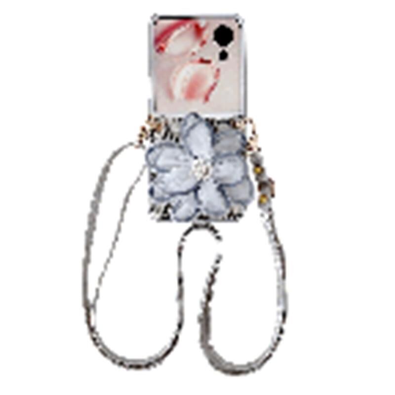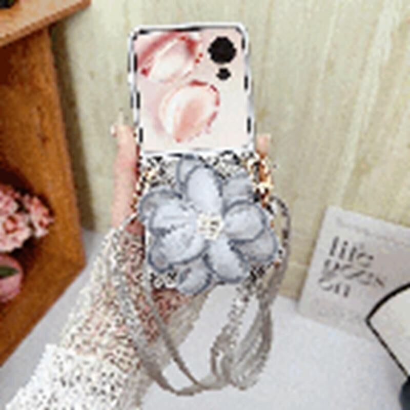 Για Honor Magic V Flip πολύχρωμο υφαντά μοτίβο 3D νήματα λουλούδι τηλέφωνο υπόθεση με κορδόνι (λευκό)