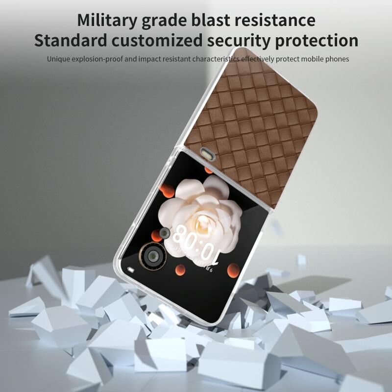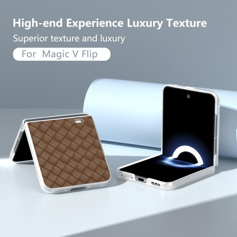 Για Honor Magic V Flip παγωμένο ημιδιαφανές πλαίσιο υφαντή υφή PU υπόθεση τηλεφώνου (καφέ)