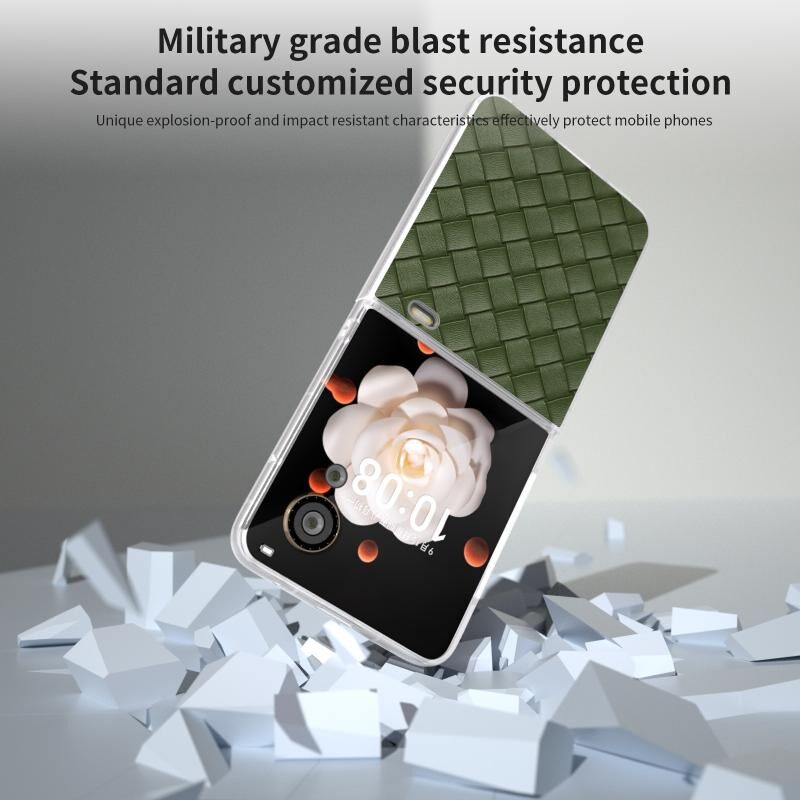 Για Honor Magic V Flip παγωμένο ημιδιαφανές πλαίσιο υφαντή υφή PU υπόθεση τηλεφώνου (πράσινο)