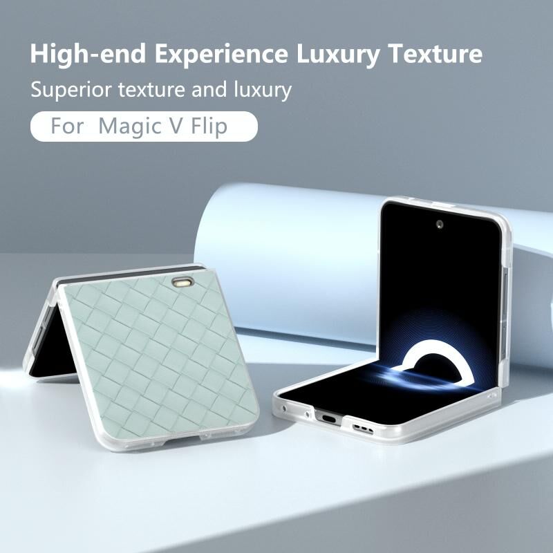 Για Honor Magic V Flip παγωμένο ημιδιαφανές πλαίσιο υφαντή υφή PU υπόθεση τηλεφώνου (ανοιχτό πράσινο)