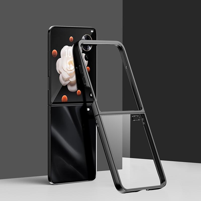 For Honor Magic V Flip Full Coverage Electroplate PC Transparent Phone Case(Black)