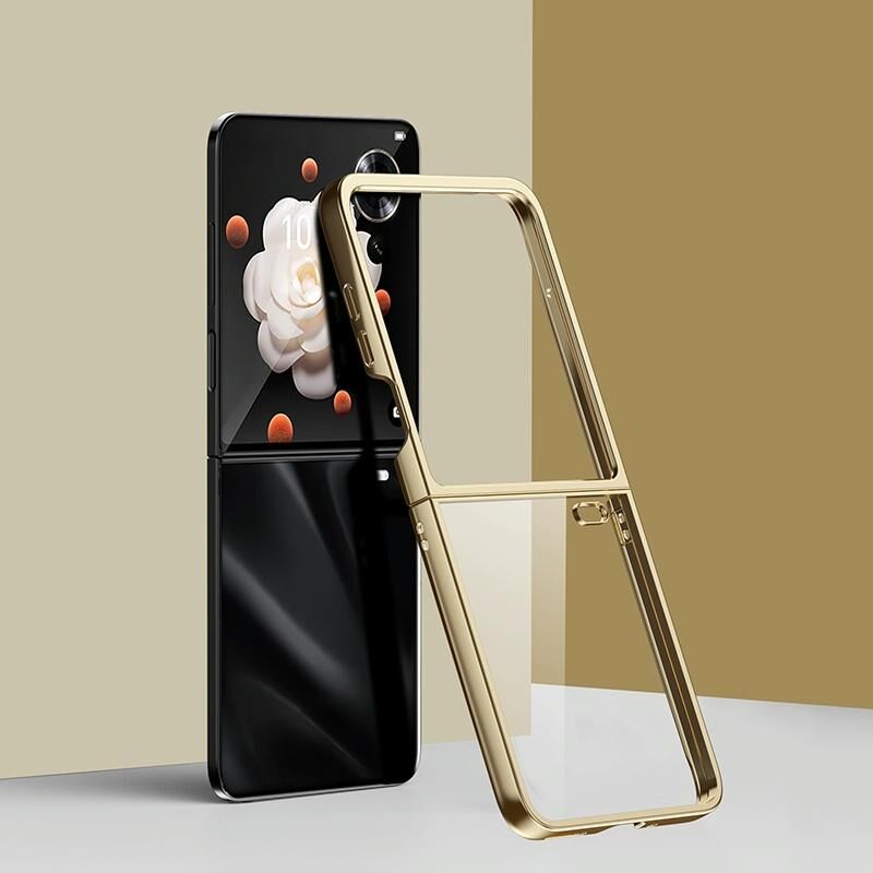 For Honor Magic V Flip Full Coverage Electroplate PC Transparent Phone Case(Gold)