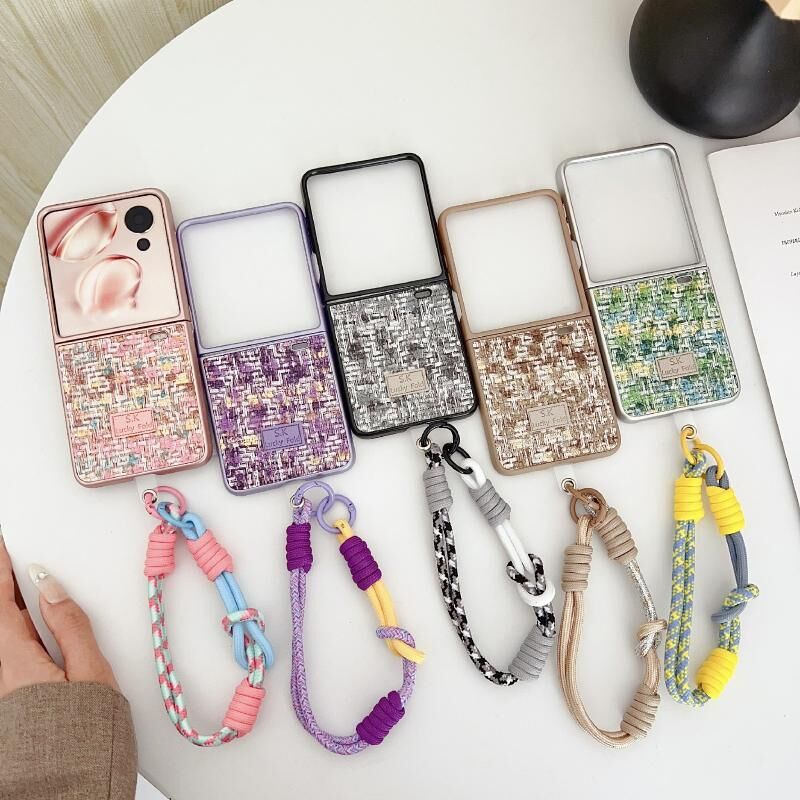 Για Honor Magic V Flip Illusory χρώμα Weaving Υφή τηλέφωνο υπόθεση με το χρώμα λουράκι (ροζ)