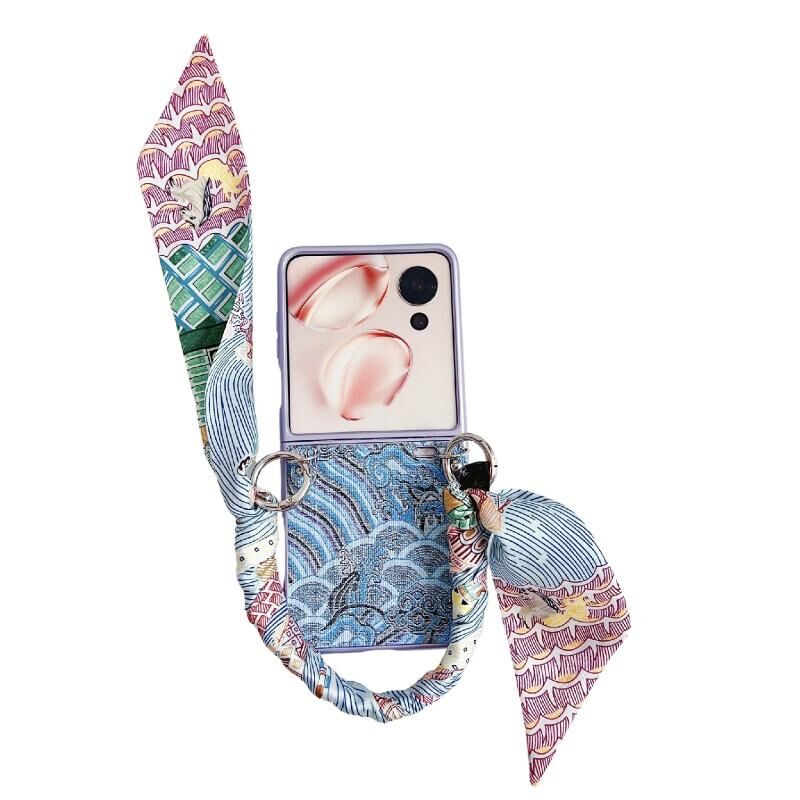 Θήκη κινητού τηλεφώνου πλήρους κάλυψης For Honor Magic V Flip με κεντήματα εύγουνων νεφελών και κασκόλ / βραχιόλι (Πράσινο)